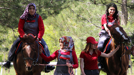 Kursiyerlerden 36 yaşındaki Aslı Erdem ise evlendikten sonra eşinin atlarına duyduğu ilgi üzerine bu eğitime katılmaya karar verdiğini anlatarak, "Çocuklarım var. Anne duygusuyla çocuklarım gibi sevgi ile yaklaşıyorum. Zaten hisli hayvanlar, o da sizin hislerinizi bildiği için daha da bağımlılık oluyor." dedi.