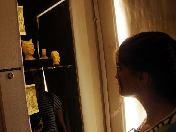 Gaziantep'te 1800 yıllık olduğu tahmin edilen, alnında tac, kulağında ise küpe bulunan yüzü gülen kadın heykeli kadeh, ziyaretçilerin ilgisini çekiyor.