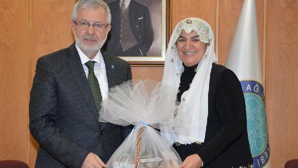 İmza töreninin ardından Bursa Üreten Kadın Dernekleri Federasyonu Başkanı Sermin Cakalıoğlu, UÜ Rektörü Prof. Dr. Yusuf Ulcay’a destekleri için kendi hazırladıkları doğal gıda sepetini hediye etti.