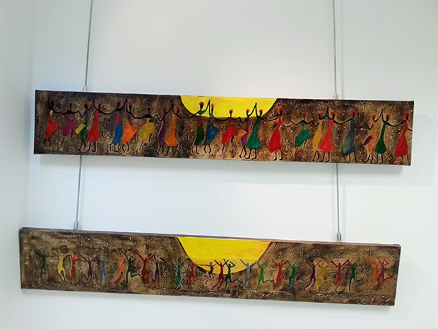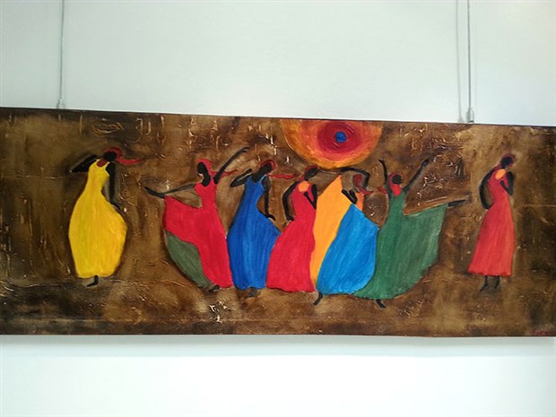 “Resim öğretmeniyim, Bartın’da çalışıyorum. Eğitim Sen eski şube başkanıyım. Sergi kadın temalı… Dans eden kadınları gördüğünüzde bunların sadece dans ediyor olduğunu düşünmeyin, ben coşkuyu, direnişi, yan yana kalabilmeyi resmettim. Ben bir kadın olarak ataerkil düzenden bugüne kadar, kadının o karanlık içerisinden çıkması ve omuz omuza çıkmamıza ilişkin çalışmalar yapıyorum.