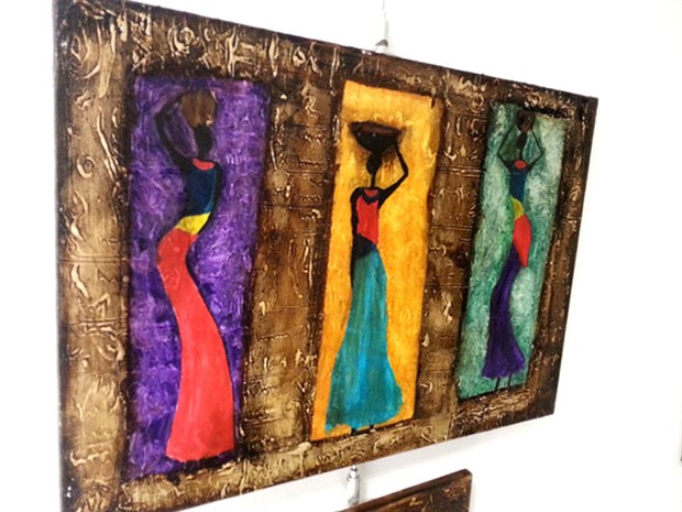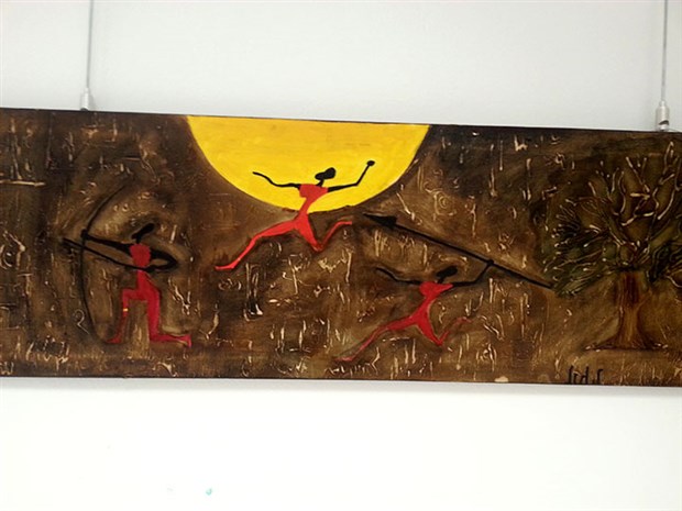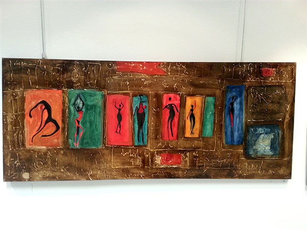Resimlerimde daha çok alt fon dikkati çekiyor. Doku çalışıyorum. Özel bir teknik ile zift kullanıyorum. Doku da tarihi figürler kullanıyorum. Plastik boya ile de boyuyorum.