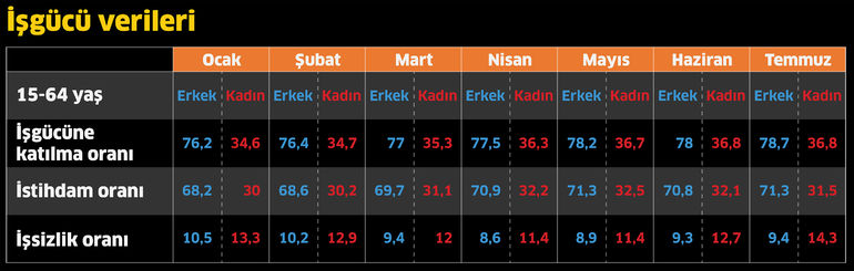 15-64 yaş grubundaki kadınların işgücüne katılım oranı geçtiğimiz ay yüzde 36,8 ile Cumhuriyet tarihinin rekorunu kırmıştı. Benzer seyir bu ay da devam etti. Erkeklerin işgücüne katılım oranı ise yüzde 78,7 seviyesine yükseldi.