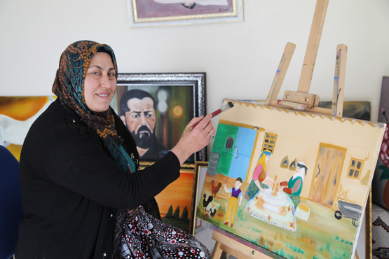 "Resme zaman ayırmama hiç karışmaz. Eşimi ve çocuklarımı uğurladıktan sonra ev işlerini yapıyorum. Tarladaki işlerimi de bitirince çalışmak için ayırdığım odama çekiliyorum. Orası benim dünyam. Müziği açıp, fırçamı elime aldığımda asıl hayatım başlıyor. Her şeyi geride bırakıyorum. İçimden ne geliyorsa onu tuvale aktarıyorum. Yurt içi ve yurt dışındaki akrabalarımdan siparişler aldım. Hayalim, ilk sergimi açmak. Sergi için gerekli sayıya ulaşmak için az uyuyor, çok çalışıyorum."