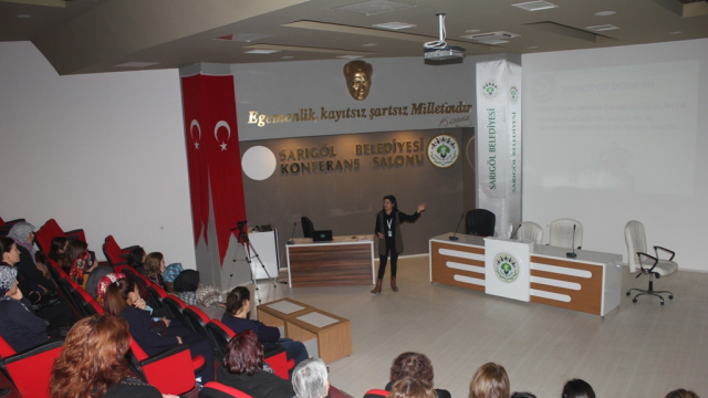 Büyükşehir Belediyesi'nin aylık kültür sanat etkinlikleri kapsamında Sarıgöl'de 'Kadın Sağlığı' semineri düzenlendi. Sarıgöl Belediyesi Konferans Salonu'nda düzenlenen seminerin konuşmacılığını Ebe Gülşah Filiz yaptı.
