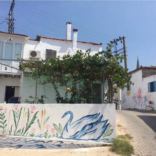 İZMİR'in Çeşme ilçesindeki Türkiye'nin ilk Slow Food Köyü olarak dünyaya ilan edilen Germiyan mahallesinde duvarlar Slow Food logosu ve çeşitli desenlerle renklendirildi.